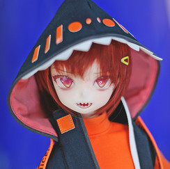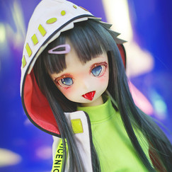 AIMERAIがマンガシリーズにおいて行っている表現スタイルの試みは、過去の人気作「アリサ」や「キリヤ」からも見て取れます。「アリサ」と「キリヤ」のメイクは、目の下に少し赤めのチークをアクセントに入れることで、キュートさより少々ヤンデレ感を引き出しています(笑)。キリヤの顔はギザ歯で洋服は黒色、白色、紫色の組み合わせと、個性をさらに際立たせるように仕上げております。