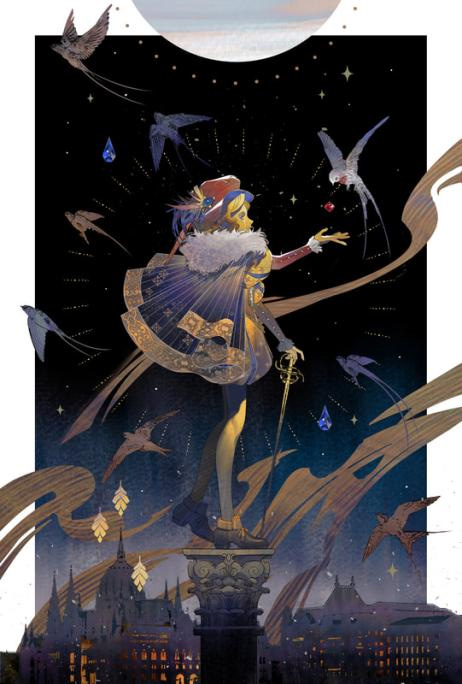 I've worked on illustrations for NetEase"Onmyoji", "Onmyoji: The Card Game", "Harry Potter: Magic Awakening", the cover illustration and interior manga for the 2022 re-print version of “At Night Machilian” by People's Literature Publishing House, the cover illustration for “Crest of the Stars” series by New Star Press, as well as illustration for entertainment weekly magazine in US, also worked on concept design for the“Tony Hawk”project at Activision Blizzard.