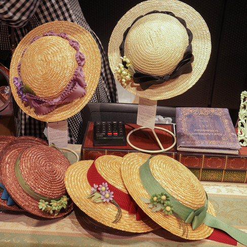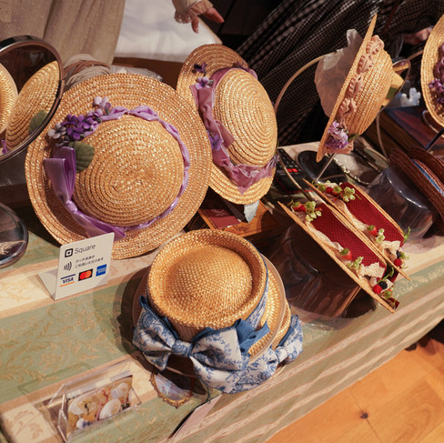 様々なモチーフのリボンをあしらった天然草のハットが可愛い「シュエット」さん。ハットも複数カラーあり、リボンとの組み合わせのバリエーションも多いのでお気に入りの衣装に合わせられる一品が見つけられそうです。帽子の内側にはピンが付いていて髪に留めることが出来る仕様も着用者への心配りを感じさせてくれます。