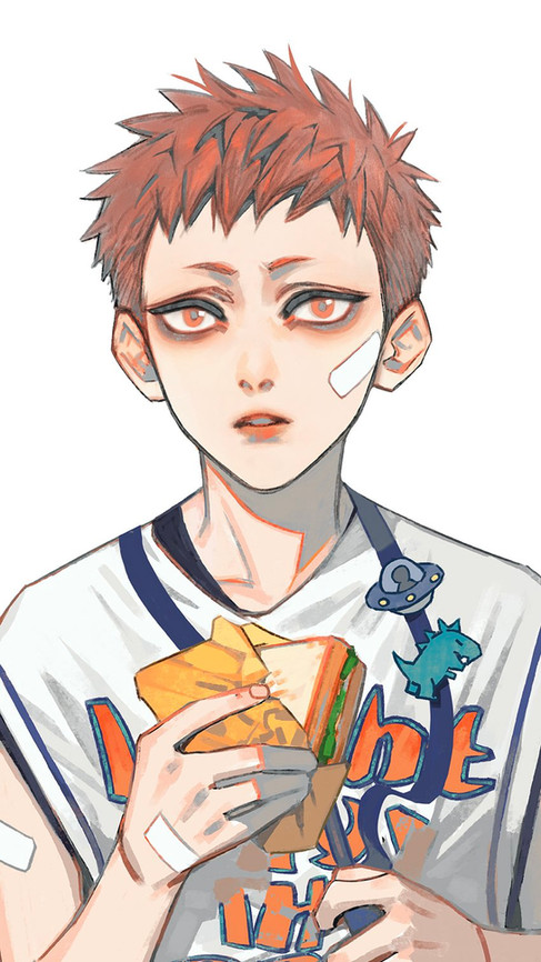 赤い髪の毛で肌は白く、ファンからは「赤髪」と呼ばれています。家庭は裕福ではありませんが、学校ではヤンキーとして振る舞っています。見た目は不良少年のようですが、意外にも純情であり、料理が得意で、主夫としての一面もあります。