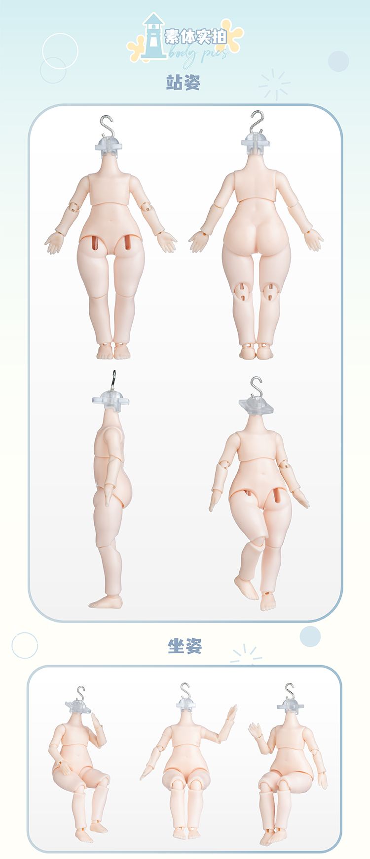 各ドールは、細部にわたるまでこだわり抜かれたデザインと、ポーズを自在に変えられるボールジョイント構造を持っています。さまざまなポーズで自由自在に表現できます!