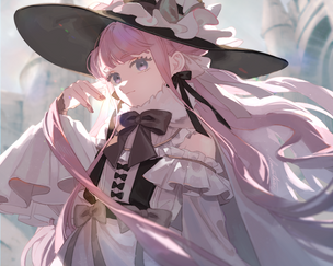 モニカは可愛いもの、お洒落とお菓子が大好きな魔女で、自分の周りのものを全て可愛く飾らないと、満足できない性格です。彼女が身に着けているアイテムは、どれもアレンジ済み。リボンたっぷりの彼女の衣装も、彼女が一つずつ縫い付けています。美しい白猫のシュクレは彼女の使い魔であり、親友です。
